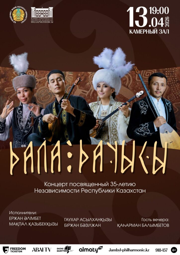 KAZAKH STATE ACADEMIC PHILHARMONIC NAMED AFTER ZHAMBYL Attention! Dear listeners, in order not to disturb our guests and performers, the doors close 25 minutes after the start of the concert. Age limit: 6+ (have children’s birth certificate in any format with you)