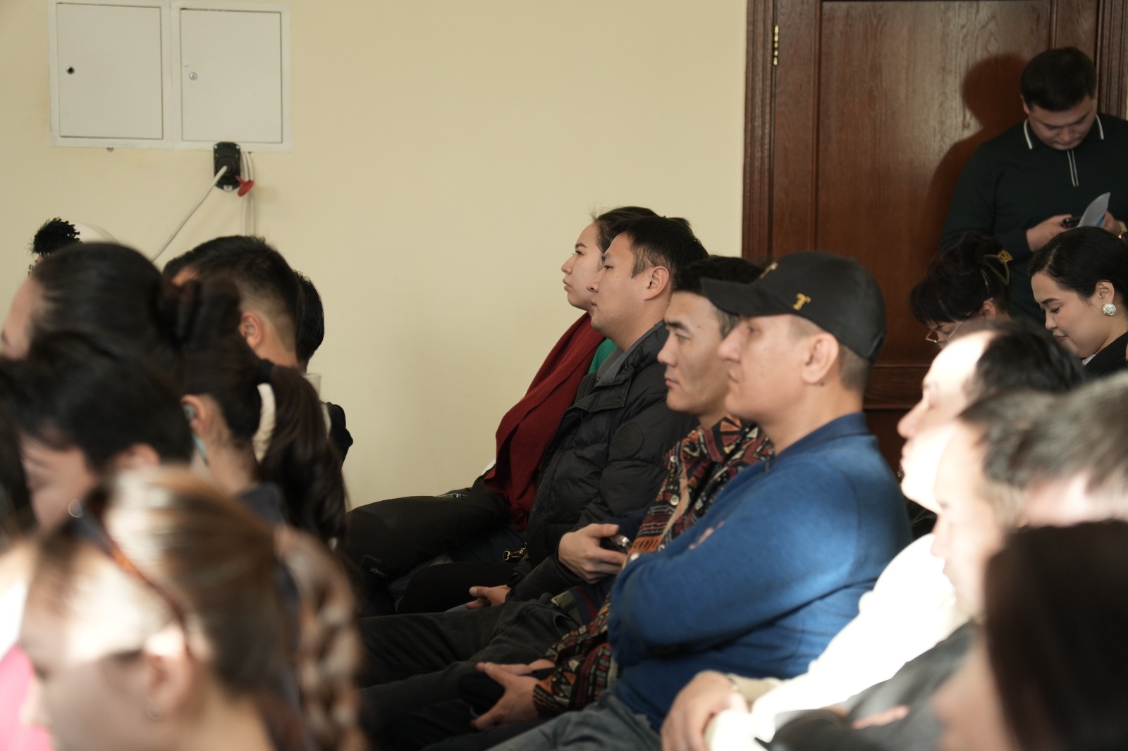 The coordinator of the Anti-Corruption “Antikor Volunteers” project for the city of Almaty, head of the Anti-Corruption Department of the “Adilet zhastar odagy” organization, Yerbolat Turlan, and a member of the Financial Security Working Group of the Financial Monitoring Agency, Aibek Berikboluly, met today with the staff of the Zhambyl Kazakh State Academic Philharmonic.