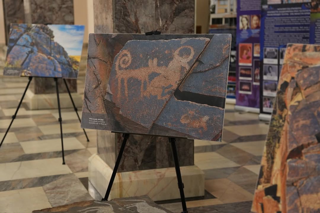Today, in honor of the 90th anniversary of the Zhambyl Kazakh State Academic Philharmonic, the State Historical, Cultural and Natural Museum-Reserve “Tanbaly” opened a traveling exhibition titled “Tanbaly: At the Crossroads of History and Art.” The main goal of the exhibition is to introduce visitors to the ancient civilization carved into stone through petroglyphs.
