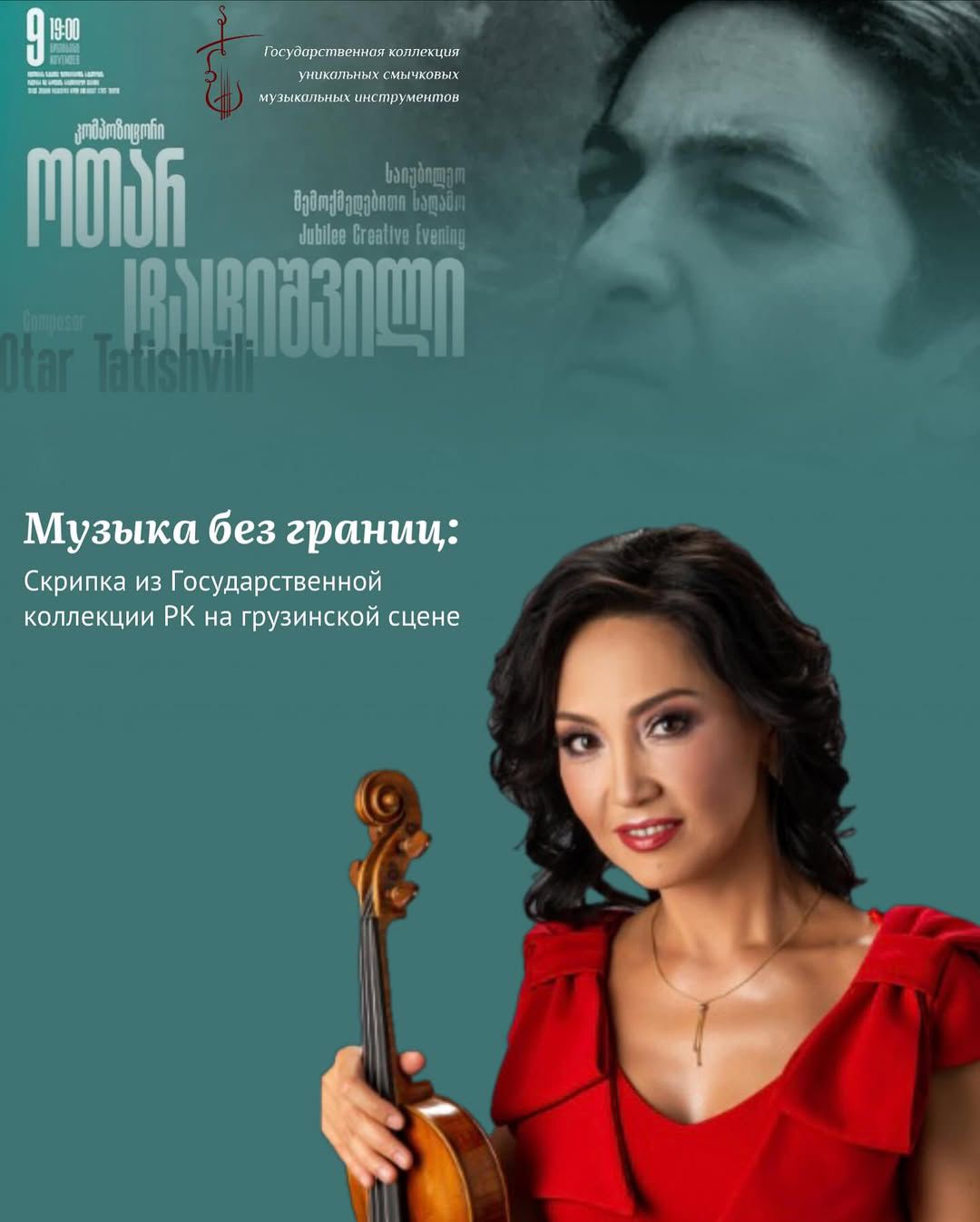 Aida Ayupova will present Maestro Taktishvili’s works on a rare 18th-century Italian violin crafted by a master of the Guarneri school — an instrument from Kazakhstan’s State Collection, with a unique history and soul.