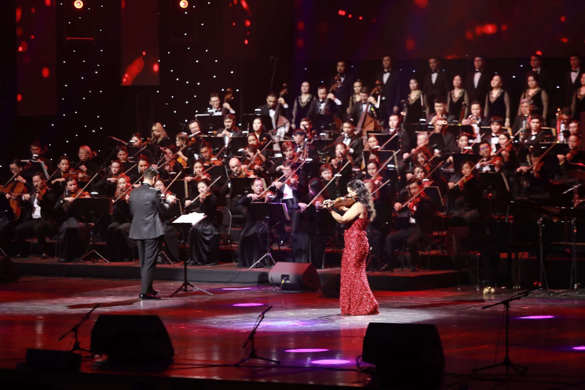 В программе концерта прозвучали произведения выдающихся казахстанских композиторов — Нургиса Тлендиева, Мукана Тулебаева, Еркегали Рахмадиева, Телеса Кажгалиева, Адиля Бестыбаева. Зрителям также были представлены произведения мировых классиков Людвига ван Бетховена, Николая Римского-Корсакова, Антонио Вивальди и Пабло Сарасате.