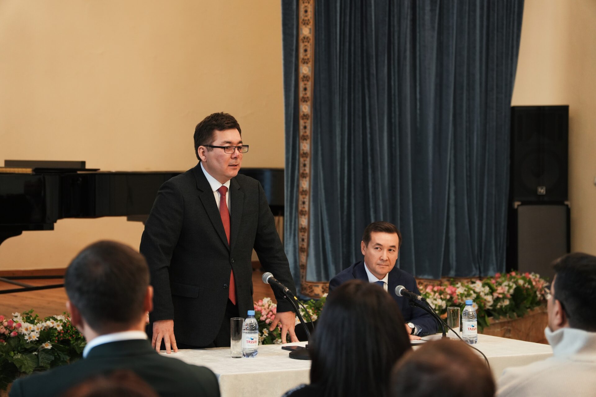 Сегодня вице-министр культуры и информации РК Айбек Сыдыков представил коллективу Жамбылской Казахской государственной академической филармонии Нургису Муратовича Дәуешова, назначенного исполняющим обязанности директора филармонии.